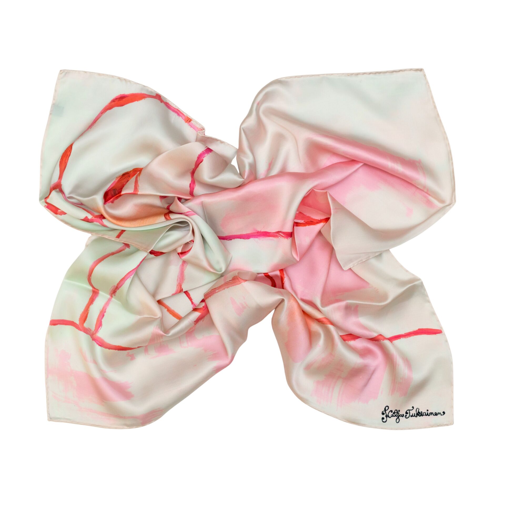 Kõikidel meie siidirätikutel on käsitsipalistatud rullkant. Kõik disainid ja värvikombinatsioonid on unikaalsed MIURIO toodetele. Paljudel siidirätikutel on trükitud jõustava iseloomuga sõnum osana mustrist. Soovime, et iga ärikingitus ja toode, mis on meie käest soetatud, annaks edasi kunstilise kogemuse tema kandjale ja imetlejale.