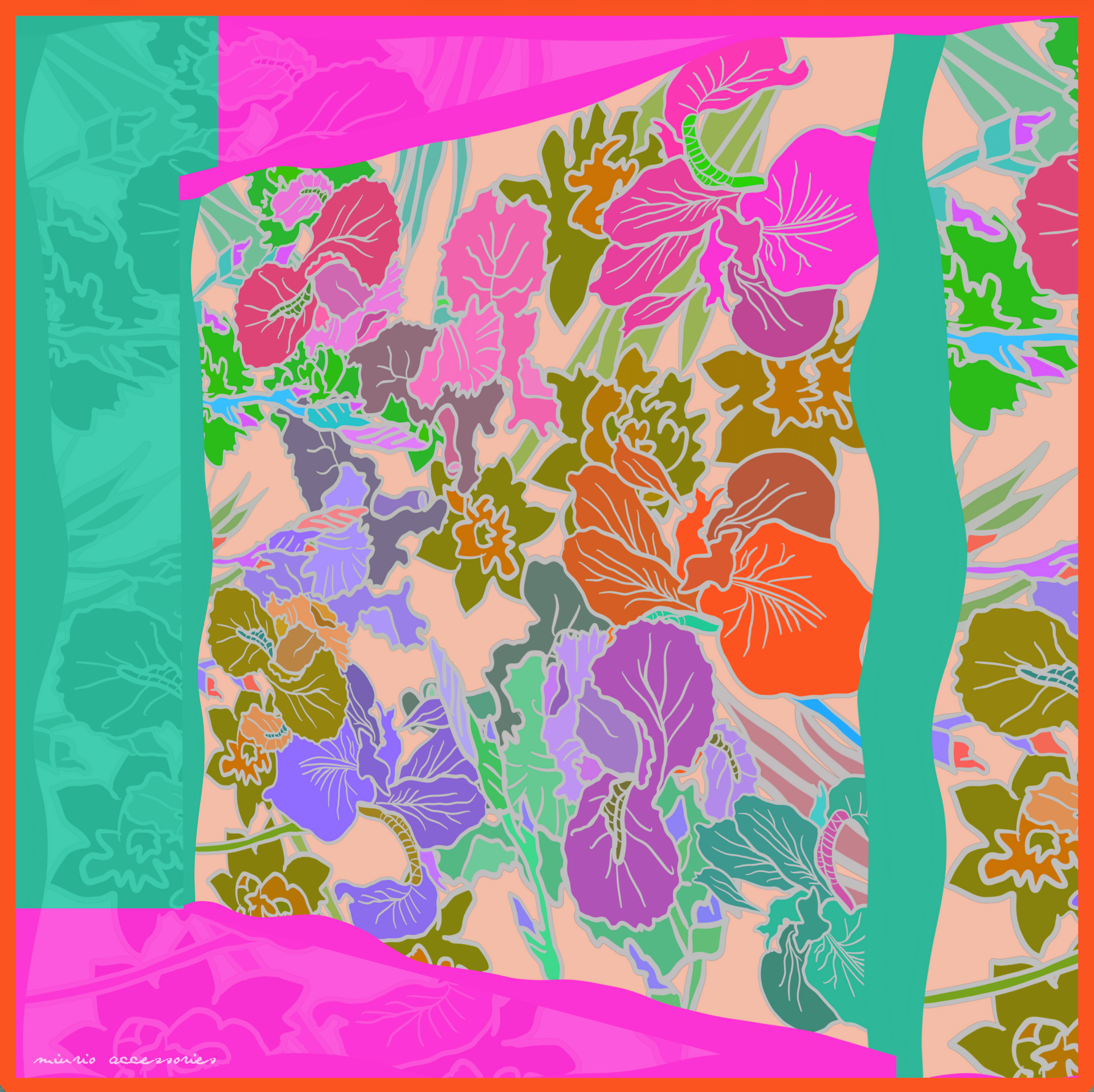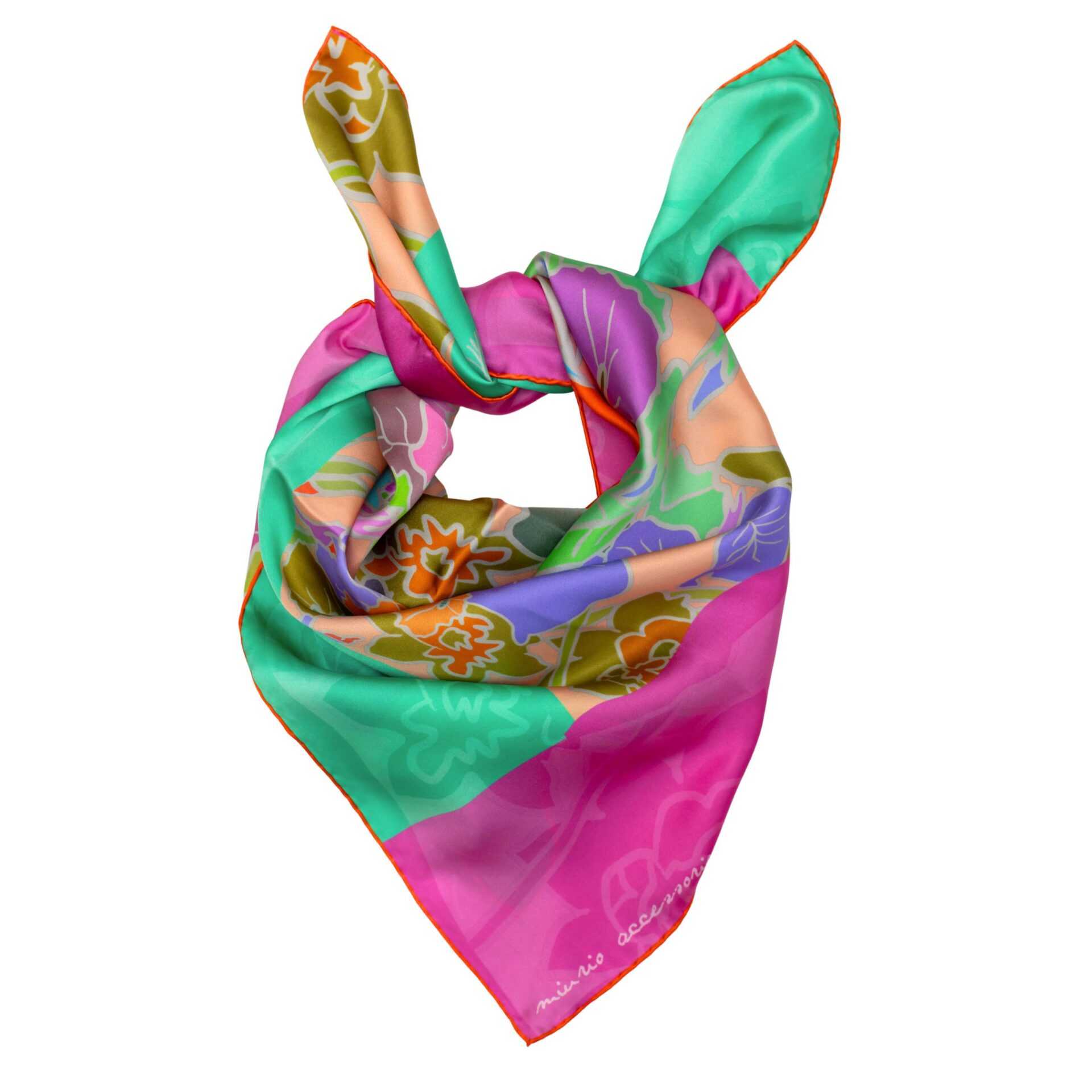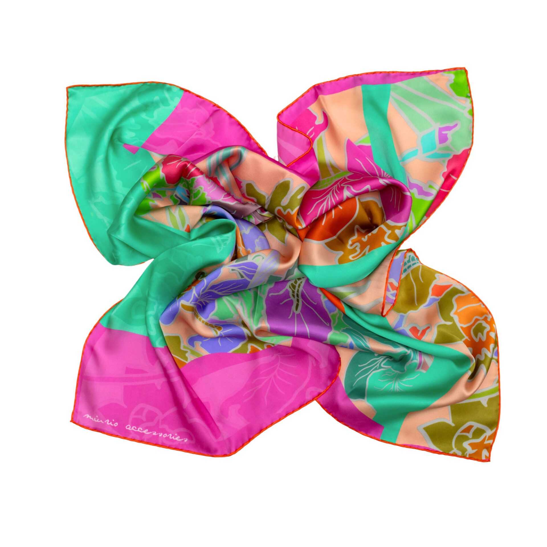 Mustri on disaininud Rita Assor. Rätik on prinditud crepe de chine siidikangale.