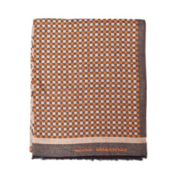 LEOPARD ORANGE-GREY the two-sided wool muffler is your number one winter accessory. Helps you to ward off the curse of the cold and humid weather. Woven from the softest blend of virgin wool and cotton. Brushed for the extra softness. Bundle it around your neck or shoulders and feel the wamth of the winter leopard.