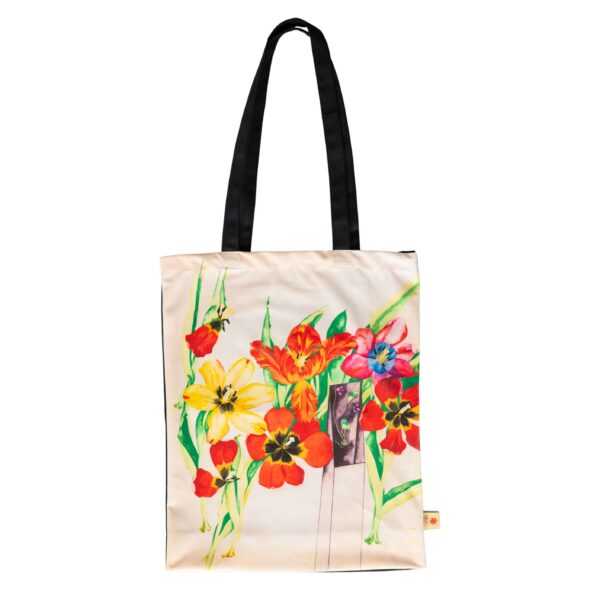 M. LEIS COMPOSITION WITH TULIPS (1985) tote bag is based on artwork by a famous Estonian oil painter and graphic artist Malle Leis.